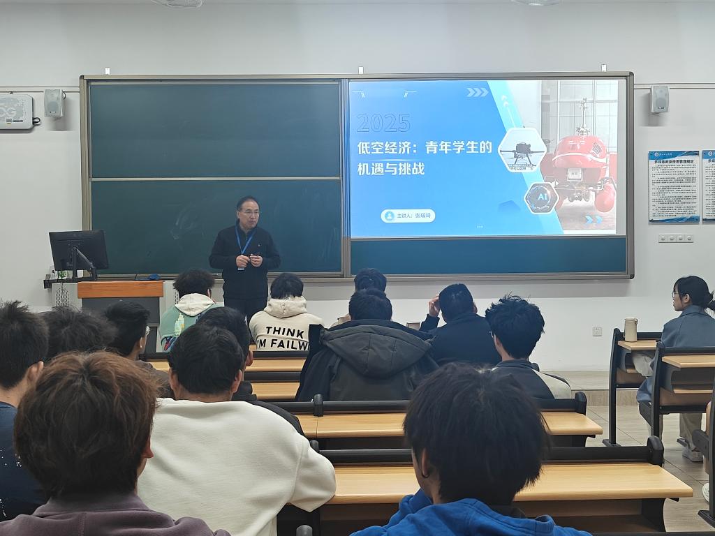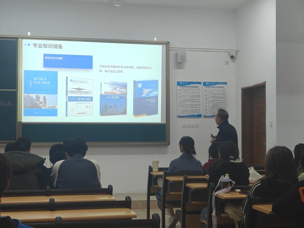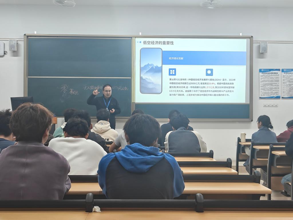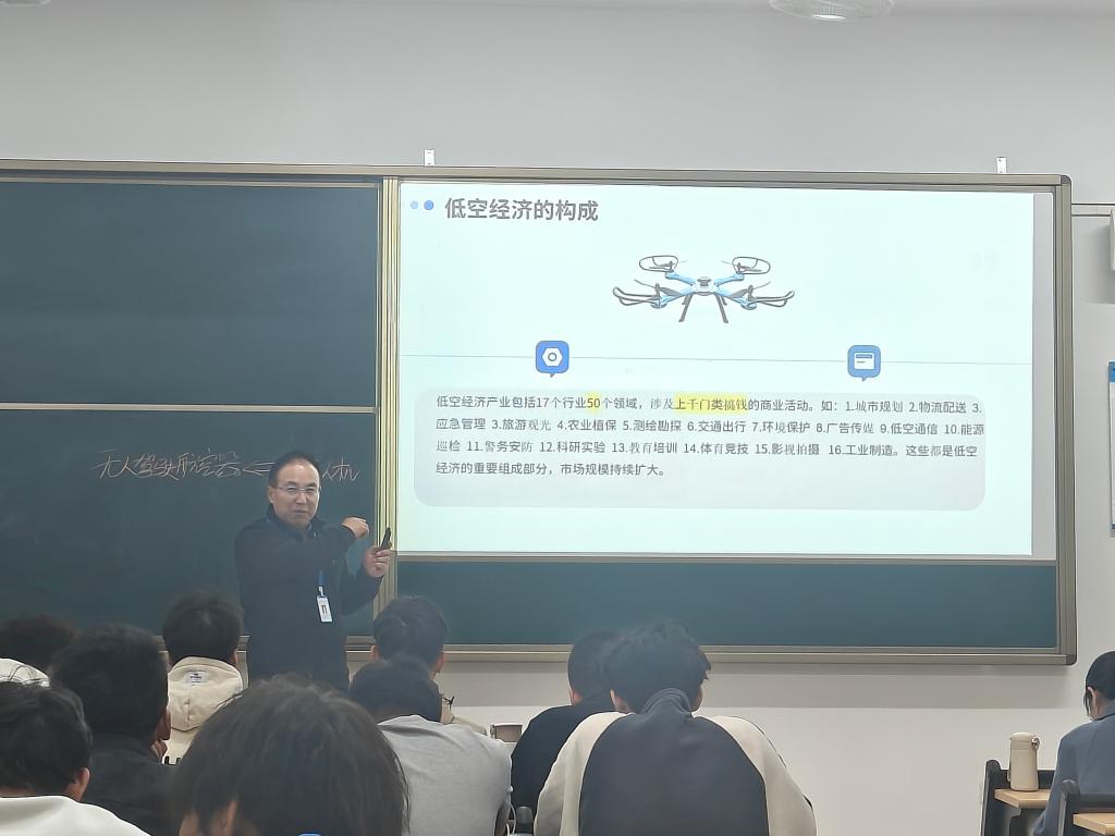课堂伊始,张瑞琦便以一组组详实的数据和生动的案例,为同学们勾勒出低空经济蓬勃发展的宏大画卷。他指出,随着科技的飞速进步,低空经济作为新兴产业领域,正以前所未有的速度崛起。据相关数据显示,近年来我国低空经济规模持续增长,预计在未来几年内将保持高速增长态势,这无疑为广大大学生提供了前所未有的发展机遇。