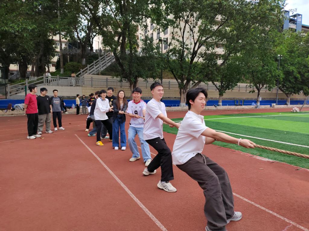 本次比赛以班级为单位,全班同学分为四支队伍同场竞技。赛场上,参赛队员们紧握长绳、扎稳步伐,铆足干劲、全力拼搏。在此次比赛中,大家心往一处想、劲往一处使,在汗水中诠释了什么是团结,在呐喊中展现了青年学子奋勇争先、昂扬向上的青春风采。